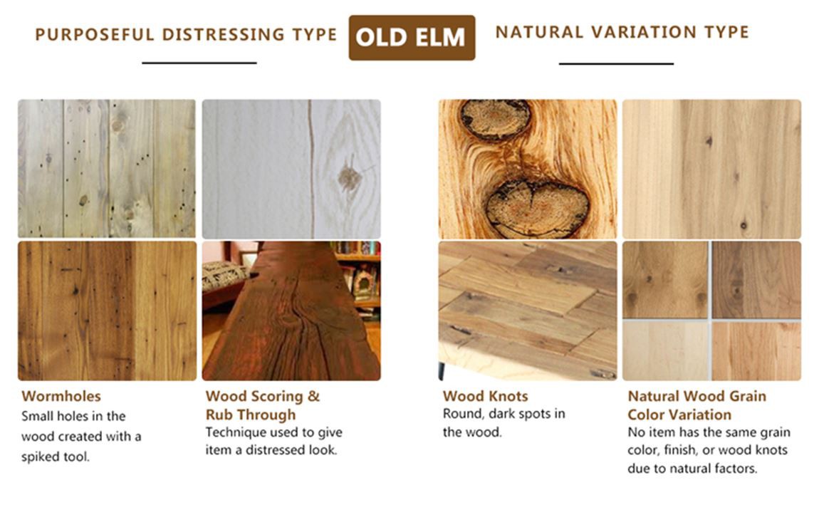 RECURSO RARO - Feito a partir de olmo velho e sólido recuperado que data de até um século atrás; Valores mais robustos e mais de coleta do que outras mesas de café baratas comuns. Será o foco da festa.