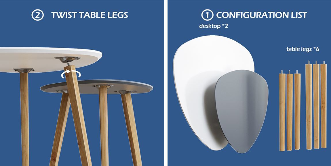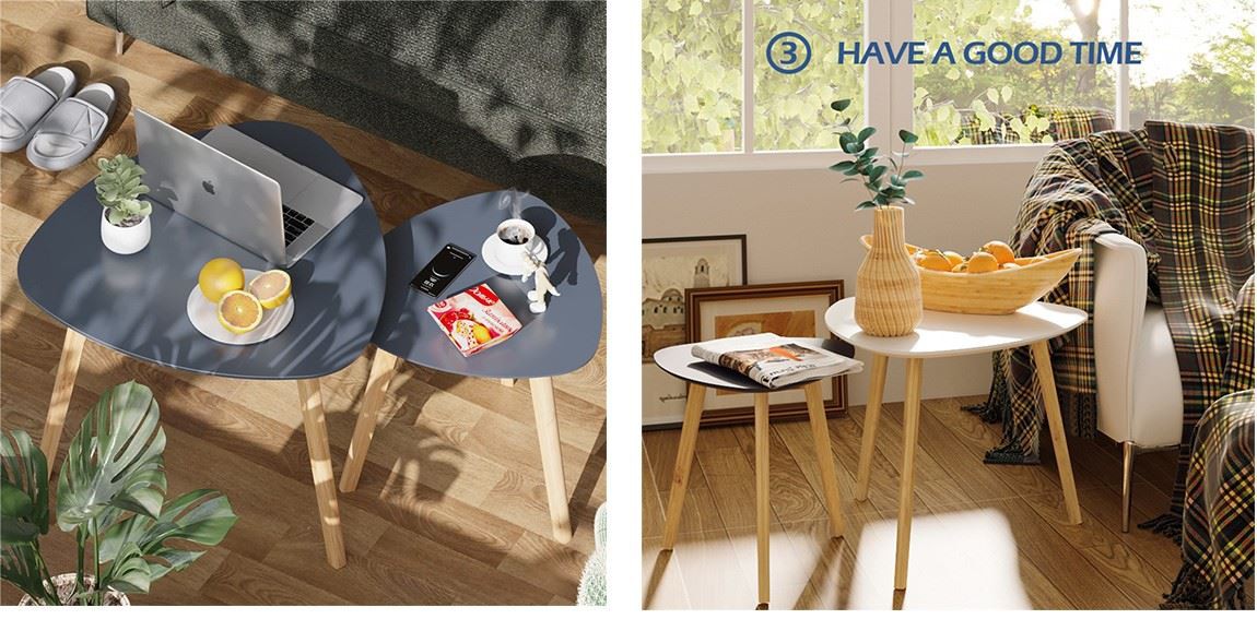 【MONTAGEM SIMPLES E MANUTENÇÃO FÁCIL】 É fácil montá-lo. Basta alinhar os parafusos das pernas com os orifícios dos parafusos e apertar os parafusos. A mesa de nidificação é fornecida com tinta UV lisa, é muito lisa e você pode limpá-la com um pano macio e úmido.