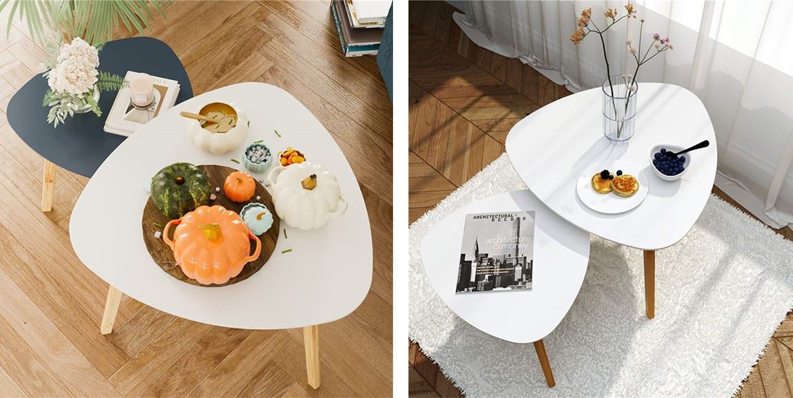2) Título:Mesa Triângulo Aninhado, Conjunto de 2 Mesas de Café Moderna Minimalista Mesa Lateral